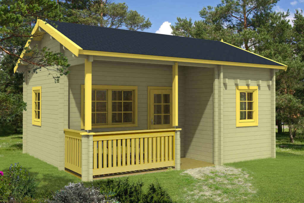 1 5/8” thick logs are mass produced and include: treated floor beams, tongue & groove floorboards, precut numbered wall logs, windows, doors, hardware with keys, trims for windows and doors, base boards, precut gable ends, purlins (beams) tongue & groove roof boards, fascia trims.